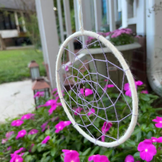Handcrafted Purple & White 6" Dreamcatcher w/ Antique Bronze Color Elephant Charm